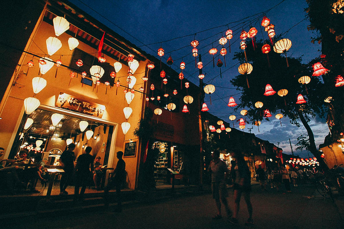 Sau đó, Xe và HDV đưa đoàn tham quan Phố Cổ Hội An: Chùa Cầu, Nhà Cổ Phùng Hưng, Hội Quán Phước Kiến, Cơ sở Thủ Công Mỹ Nghệ… tự do dạo phố đèn lồng nhiều màu sắc và mua những món quà lưu niệm của địa phương, thử tài trong các trò chơi dân gian như đập niêu, hát bài chòi…Ăn tối. Trở về Tp. Đà Nẵng, đoàn tự do hoặc trải nghiệm cảm giác với Vòng quay Mặt trời Sun Wheel – Top 10 vòng quay cao nhất Thế Giới… (Vé Sun Wheel tự túc).